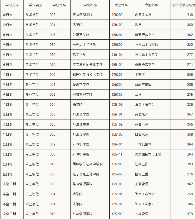 内蒙古大学2024年硕士研究生复试分数线