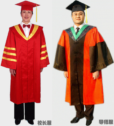 博士学位袍为黑、红两色,硕士学位袍为蓝、深蓝两色,学士学位袍为黑色,校(导师)长袍为红、黑两色。